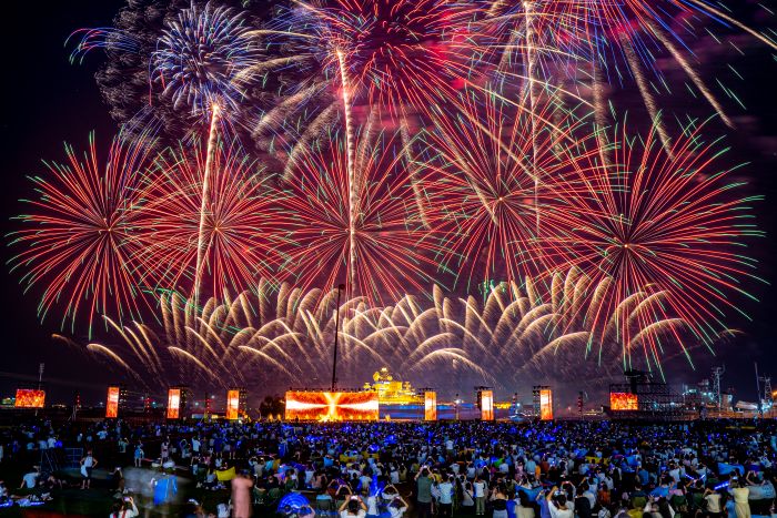今年暑期,全新升級的夏日音樂焰火秀更是解鎖“煙花星球”元宇宙敘事,依托全新煙花設計、三維立體特效及 360°多頭噴火設備等黑科技,將科技美學與軍事文化深度融合。數萬枚焰火在海上綻放,搭配舞臺演藝,打造“金星?信念之光”“木星·治愈之森”等五大主題場景,詮釋了“勇敢的人先享受世界”的主題,以“人、聲、光、電、影、景、劇、焰”等元素,為游客打造出沉浸式的視聽盛宴。