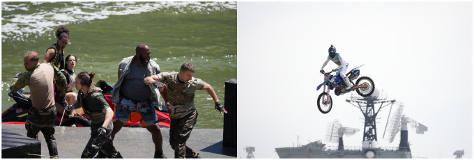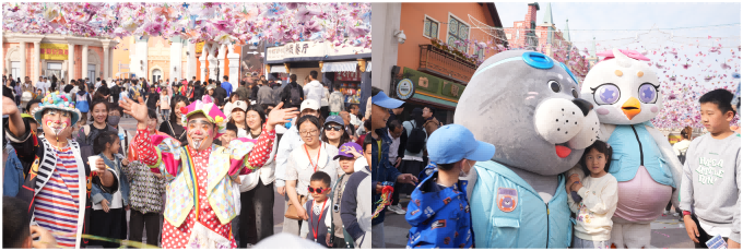 實景海戰表演《航母風暴》重磅回歸,再現驚心動魄的海上激戰;《極炫飛躍》限時上演,摩托車手化身空中飛人,詮釋勇氣與技巧的完美結合;《飛車特技》加場上演,賽道飄移穿越火圈,奏響速度與激情交響曲。親子游客也在這里找到了專屬歡樂——《偶韻東方?生肖奇緣》以傳統木偶藝術講述生肖故事,《愛麗絲奇遇記》帶領孩子們開啟奇幻童話之旅,《提線木偶派對》用靈動的木偶演繹趣味情節。在文化商業街上,萌態可掬的吉祥物“吉福”“抱豹”“妃妃”時不時帶來驚喜互動,小丑先生用搞怪表演和神奇魔術點燃觀眾熱情,歡聲笑語此起彼伏。在妙趣橫生的故事中,游客沉浸式感受文化魅力。