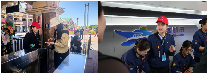 為充分保障游客游玩體驗,“五一”假期,泰達航母黨總支統籌謀劃、精心部署、多管齊下,全方位升級服務品質。一是在人員保障方面,公司領導班子深入一線,成立現場指揮部,實行“網格化”管理,對各負責區域進行全面巡查,確保隱患排查無死角、問題處置不過夜;充分發揮黨組織戰斗堡壘作用,組織開展“五一”黨員奉獻日及團員奉獻日活動,全體黨員及團員青年帶頭奮戰在服務游客、經營創收、運營保障等各條戰線,形成了強有力的“紅色服務保障矩陣”。節日期間景區內服務保障人員增加至約1200人,以真誠的態度、熱情的解答、暖心的服務,傳遞航母的人文關懷和溫度。二是在服務保障方面,新升級改造的主廣場衛生間,天橋衛生間,航母艦上五甲、二甲衛生間全部投入使用,全力保障大客流期間游客需求;還增加了移動、聯通等信號車,確保景區內通訊信號暢通。三是在交通保障方面,特開辟了華五路臨時停車場,新增660個車位,并加開了景區循環接駁專線,累計運送游客超1萬人次,切實保障了大客流期間停車需求;同時協調聯動濱海公交、市公交開通了旅游專線,“五一”期間共運行56班次。此外,協調交管部門增派警力,通過分區管控、動態疏導,保障夜場散場時車輛高效分流,顯著提升游客出行便捷度。四是在安全保障方面,“五一”期間,正式啟用景區綜合指揮中心,以智慧化手段構筑景區安全防護網。此外,還協調公安、消防、醫療、藍天救援等部門緊密協作、通力配合,建立信息共享與快速響應機制,為游客打造安全有序的游覽環境。