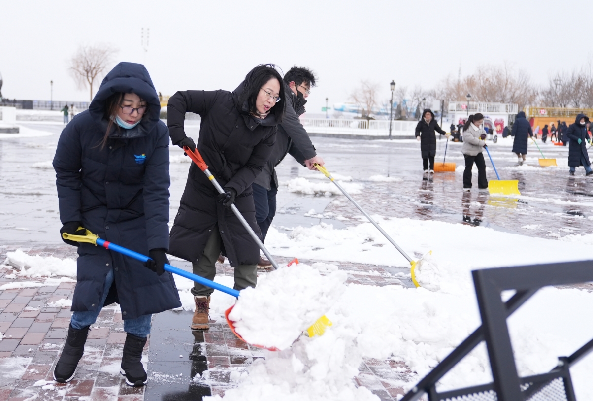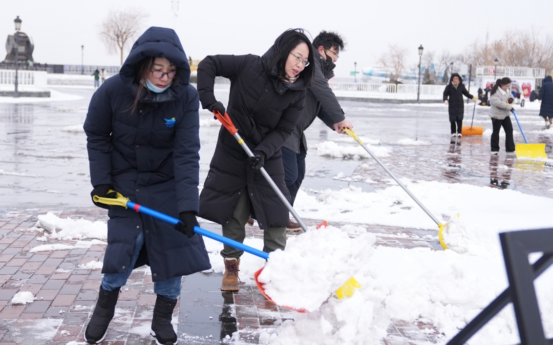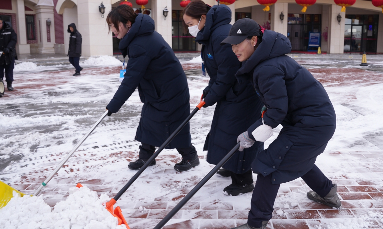 隨后,公司領導班子帶領全體員工開展除雪工作。