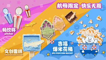 “五一”期間,圍繞航母吉祥物“吉福”“抱豹”“妃妃”形象,精心打造了“吉福甜品站”,特別推出“吉福爆米花桶”“暢飲杯”“文創雪糕”三類“文創+餐飲”類產品,廣受親子家庭喜愛。與此同時,全新打造的主題旗艦店正式營業,相繼推出“吉福”“抱豹”“妃妃”毛絨玩具、鑰匙扣、文具、雨傘等航母專屬文創產品共計60余種,進一步豐富游客購物體驗。“五一”期間,文創類產品銷售業績亮眼,占商品總銷售額的30%,充分展現文創產品的吸引力及市場價值,提升了景區文化內涵及品牌形象。