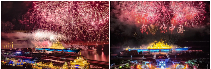 黃金周期間,泰達航母延續(xù)暑期夜場“焰遇航母”焰火音樂節(jié)熱度,以“津彩盛焰·禮贊祖國”為主題,傾情推出“津彩盛焰國慶特別版”大型無人機焰火秀,為游客帶來“白+黑”旅游新體驗。焰火秀現(xiàn)場,數(shù)萬發(fā)定制禮炮、數(shù)萬枚焰火圍繞“基輔號”航母聯(lián)動綻放,引發(fā)現(xiàn)場游客陣陣驚嘆。近千架無人機組成國慶主題圖案驚喜亮相,萬人高呼“祖國萬歲”“我愛你中國”,高唱《我和我的祖國》,共祝祖國74周年華誕,節(jié)慶氛圍濃厚。焰火秀結(jié)束后紛紛自發(fā)鼓掌歡呼,為演出、更為祖國點贊喝彩。節(jié)日期間,航母大型焰火秀活動獲新華社、央視客戶端、網(wǎng)易新聞、天津市電視臺、津云、津濱海、天津日報、今晚報等多家主流媒體爭相高頻報道,更是霸屏抖音、小紅書等自媒體平臺。