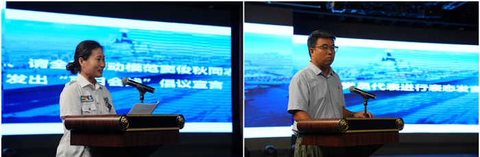 7月10日下午,在“基輔號”航母機庫大廳泰達航母召開2023年上半年工作會暨暑期“百日會戰”勞動競賽啟動儀式。泰達航母黨政領導班子成員出席,全國勞動模范、工會、團支部、中層干部及部門員工代表參加。