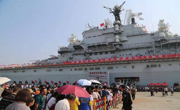 “十一”長假,游客們紛紛登艦一睹“航母編隊”強大陣容;已加演的王牌演出《航母風暴》《飛車特技》依舊場場爆滿,摩托車特技《極炫飛躍》演出更是引來游客蜂擁而至,使整個聲吶廣場成為游客尖叫與歡呼的海洋。