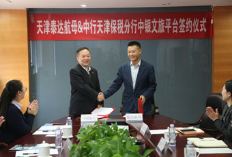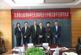 2020年11月6日下午,泰達航母&中行天津保稅分行中銀文旅平臺簽約儀式在泰達航母綜合辦公樓一樓會議室舉行。中國銀行天津保稅分行副行長王小港,天津市分行行政事業(yè)部高級經(jīng)理艾晗,泰達航母常務副總經(jīng)理佟明、副總經(jīng)理張超出席此次簽約儀式。
